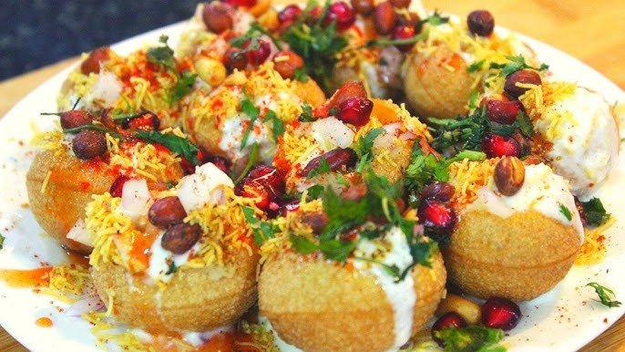 Follow the steps above — fill crispy puris with mashed potatoes, chickpeas, chutneys, and curd, then garnish with sev and coriander.