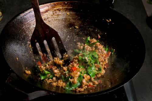 - Add Flavors: Remove from heat and stir in fish sauce, lime juice, chili flakes, and a pinch of sugar.