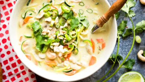 - Coconut Curry Soup – with a hint of curry paste for a deeper, spicier flavor.