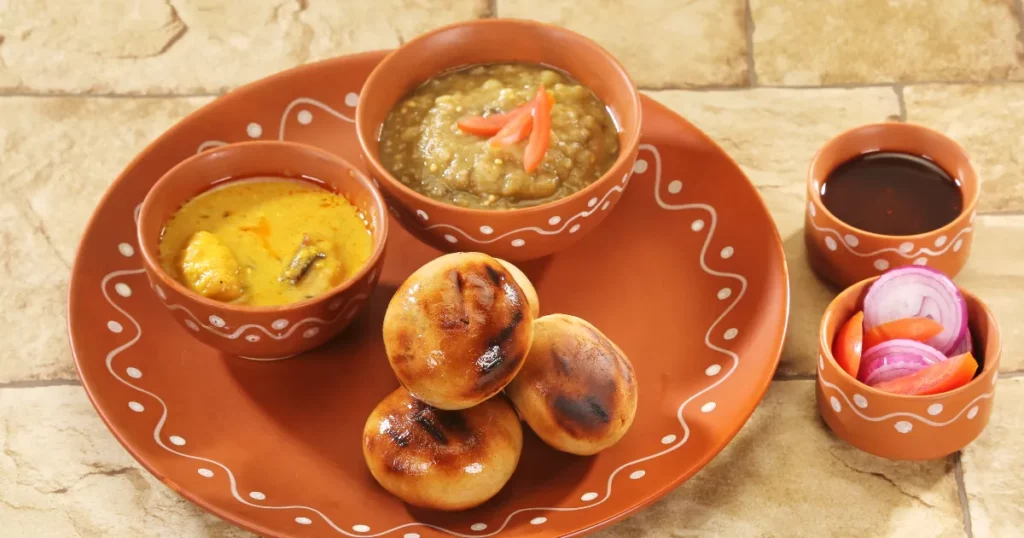 It is a traditional dish from Bihar, combining roasted wheat balls with a mashed vegetable mixture.