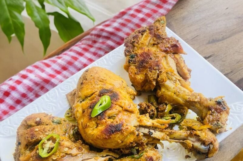 Use tandoori masala, yogurt, lemon, and spices for marination. Cook the chicken on a greased tawa until it becomes charred and smoky, flipping a few times for even roasting.